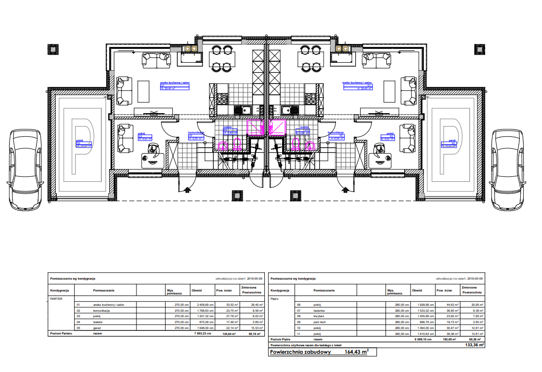 wewnętrznym przejściem do garażu.